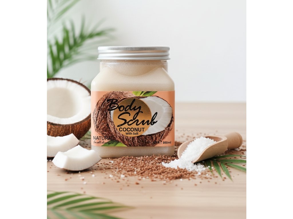 Doprajte svojej pokožke luxusnú starostlivosť s telovým peelingom Body Scrub Coconut, ktorý kombinuje silu prírody a jemnú starostlivosť. Obsahuje čistú morskú soľ, kokosový extrakt, prírodné oleje a bambucké maslo, ktoré účinne odstraňujú odumreté bunky, vyhladzujú a zjemňujú pokožku.