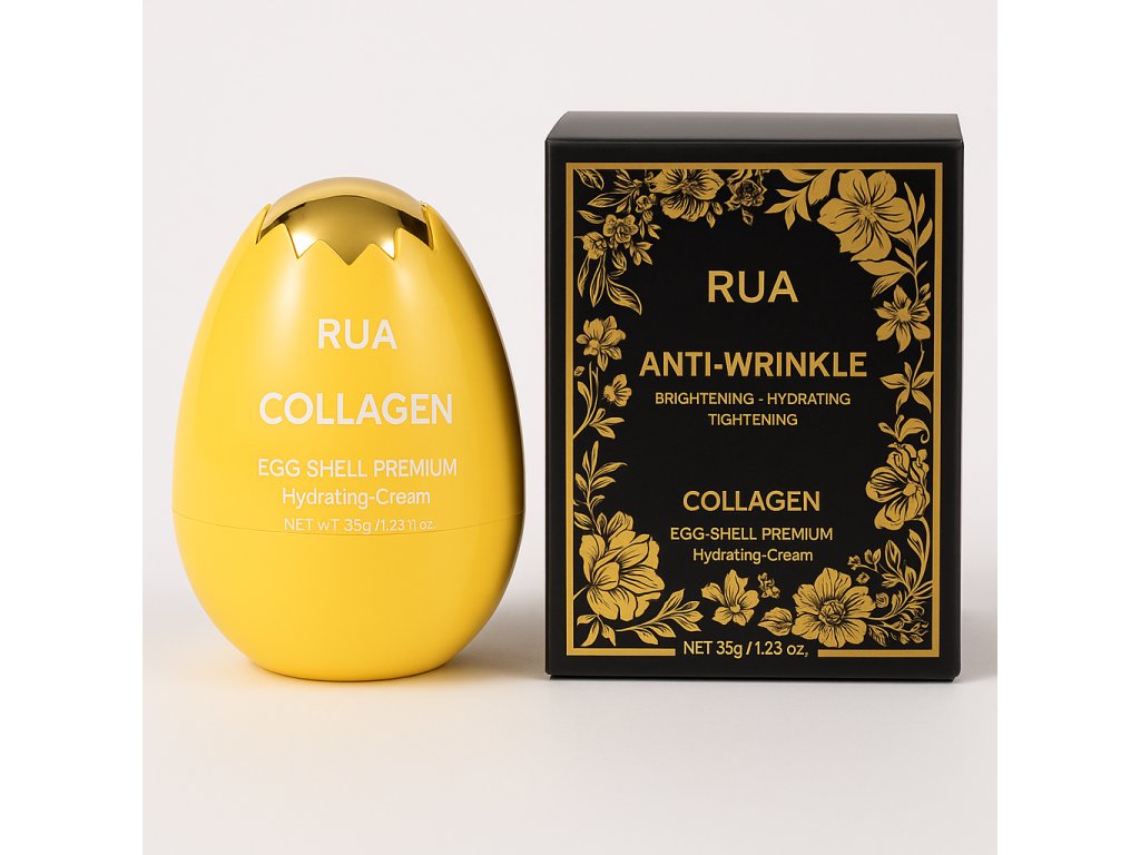 Prémiový hydratačný krém RUA s obsahom kolagénu a výťažkov z vaječných škrupín intenzívne regeneruje a spevňuje pleť. Unikátne zloženie aktivuje kožné bunky, zvyšuje pružnosť pokožky, rozjasňuje tón pleti a účinne bojuje proti známkam starnutia. Vhodný na každodenné použitie pre všetky typy pleti.