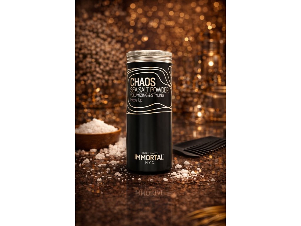 IMMORTAL NYC Chaos Sea Salt Powder dodáva okamžitý objem, matný vzhľad a kontrolu mastnoty vďaka soli z Mŕtveho mora. Ľahký púder 20 g bez zvyškov je vhodný pre všetky typy vlasov. Minerály ako magnézium, vápnik a draslík podporujú zdravie pokožky hlavy. Ideálne na cesty a textúrované účesy.