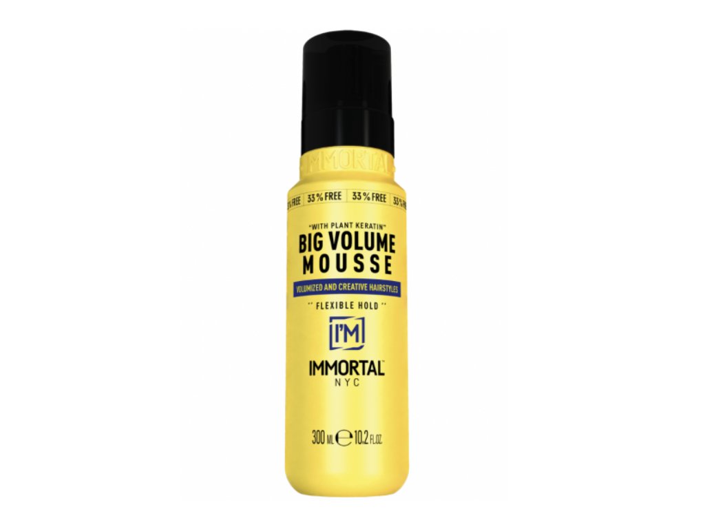 Dodajte svojim vlasom okamžitý objem a pružnú fixáciu s profesionálnou stylingovou penou IMMORTAL NYC Big Volume Mousse. Táto ľahká, ale účinná pena s obsahom rastlinného keratínu zanecháva vlasy silné, pružné a plné života – a to všetko bez akéhokoľvek zaťaženia.