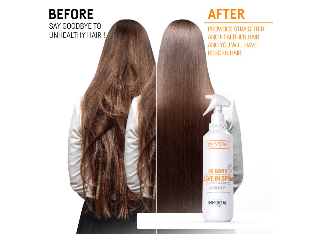Objavte silu dvojfázovej starostlivosti s IMMORTAL NYC RE-BOND Leave-In Sprejom. Tento vegánsky sprej bez oplachovania je obohatený o rastlinný keratín, biotín, niacín, panthenol a 11 rastlinných extraktov, ktoré spoločne hydratujú, posilňujú a chránia vlasy pred poškodením. Je ideálny pre všetky typy vlasov, najmä pre suché, poškodené alebo chemicky ošetrené vlasy.