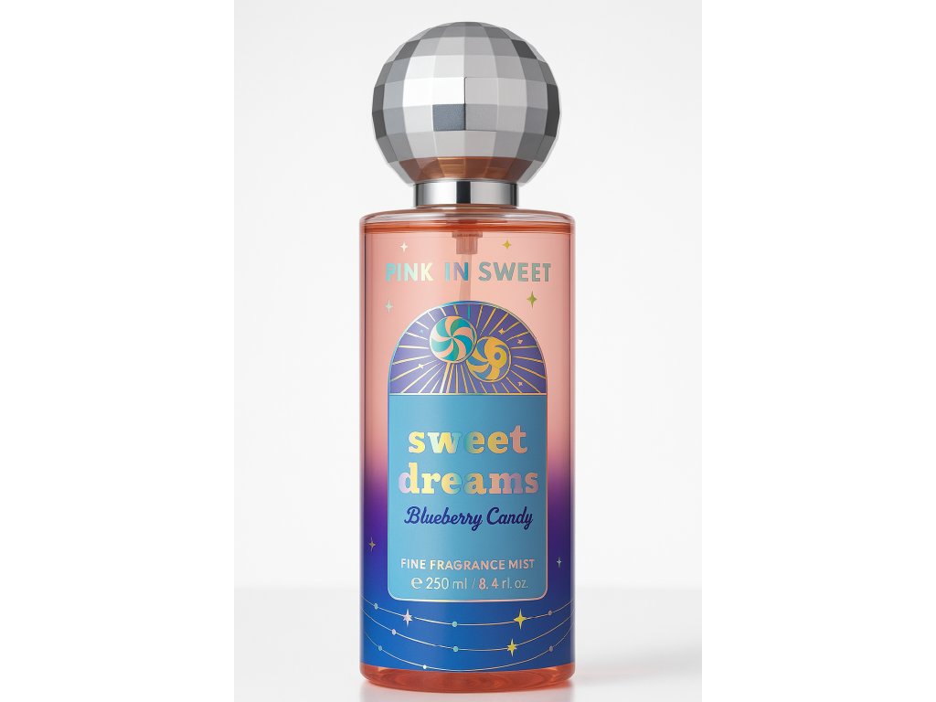 Sweet Dreams je lahodne hravý telový sprej, ktorý spája sladkosť čučoriedkových cukríkov s jemnosťou nočnej pohody. Je to vôňa ako objatie – upokojujúca, sladká a návyková.